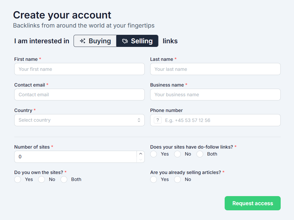- Fill out the required details, including name, email, business information, and website details.